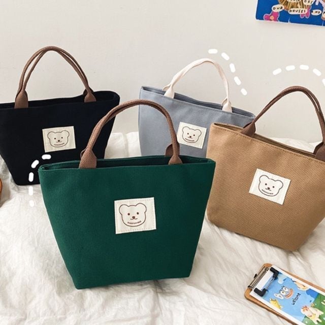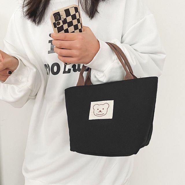 クマ キャンバス バッグ トートバッグ 韓国 可愛い ベージュ