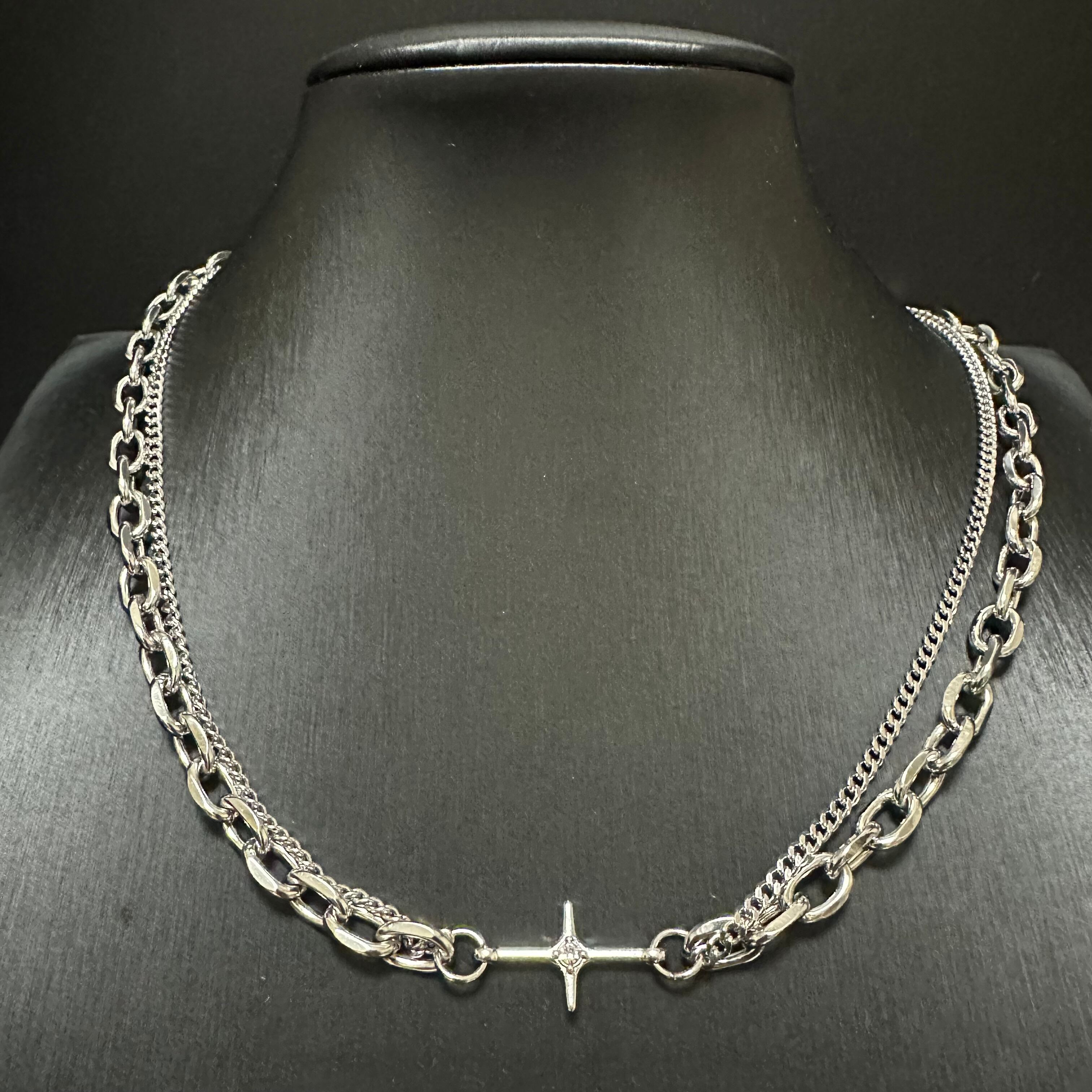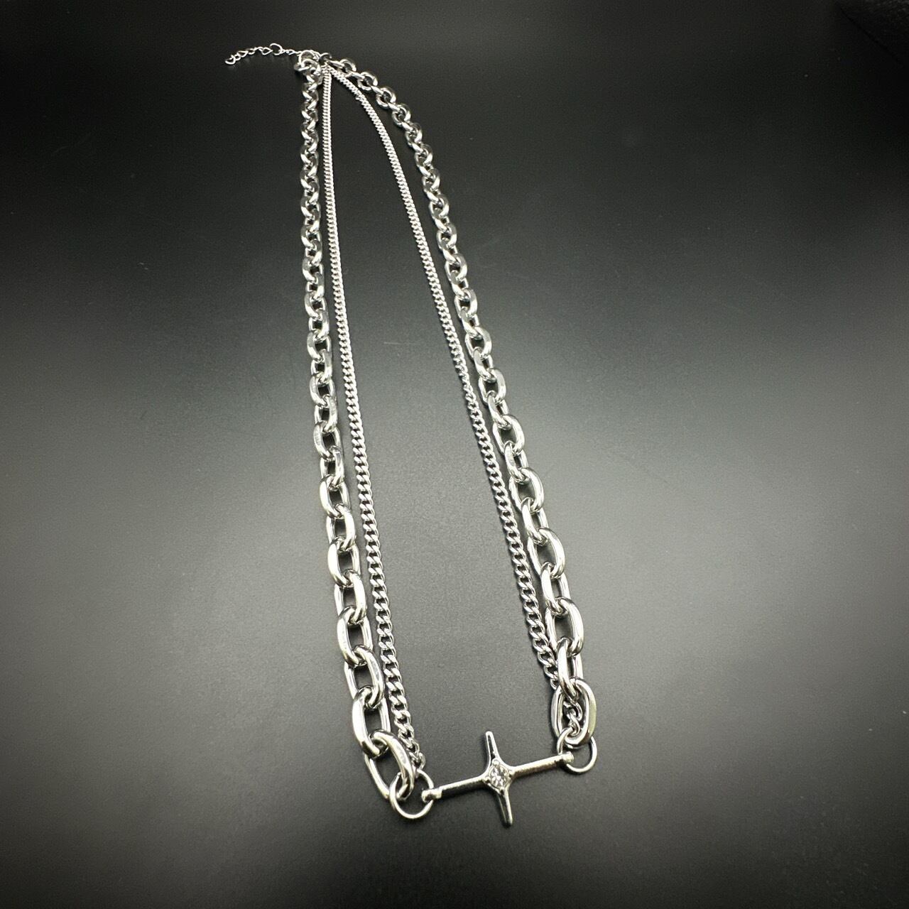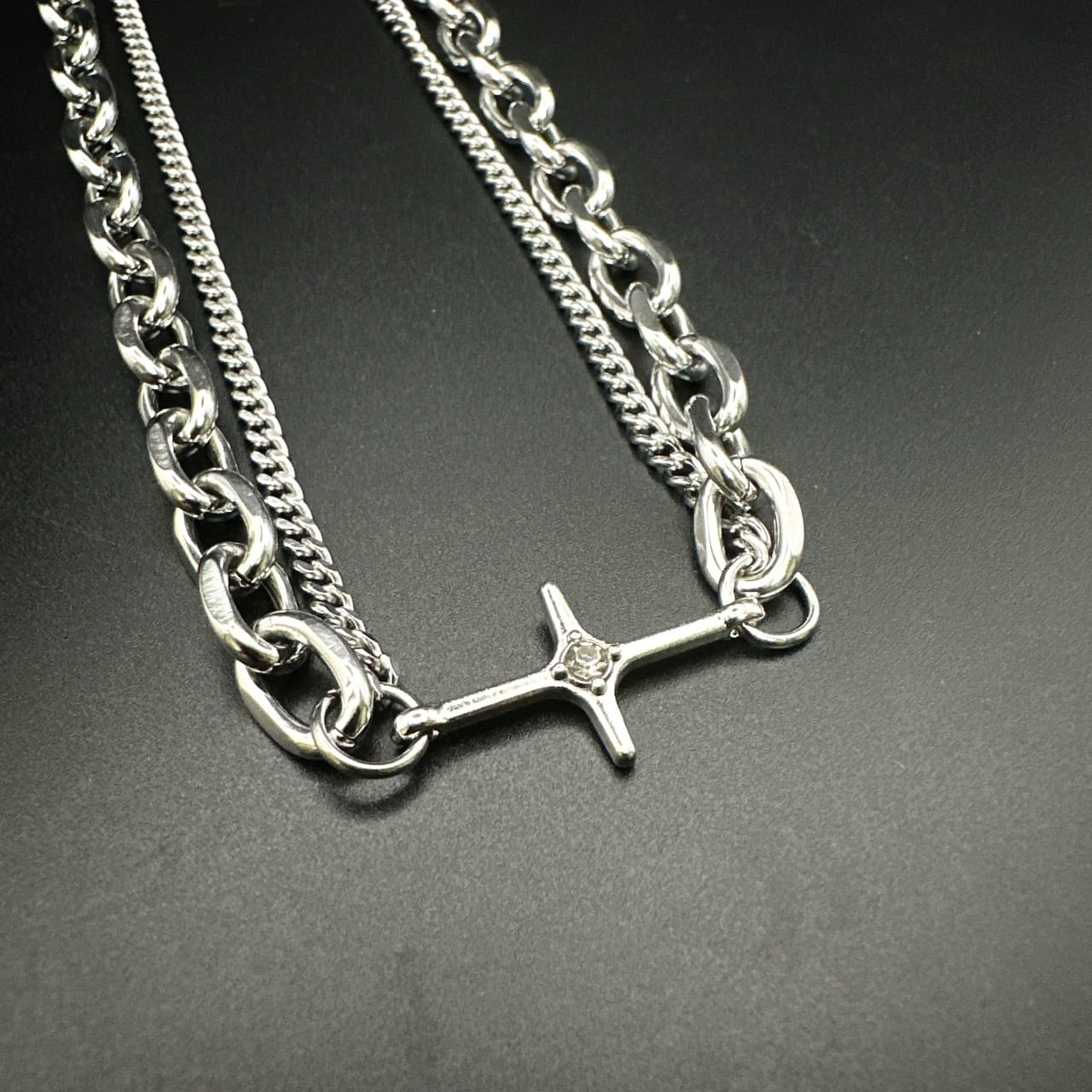 韓国 十字架 クロス ネックレス 2連 ヒップホップ ストリート