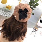 パール リボン ベレー帽 ベージュトレンド 秋 冬 韓国
