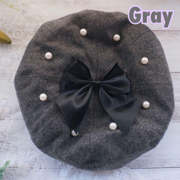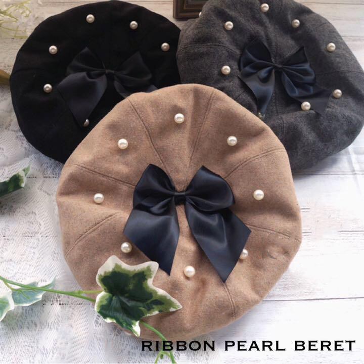 柔らかく、かぶりやすいパール リボン ベレー帽です!!