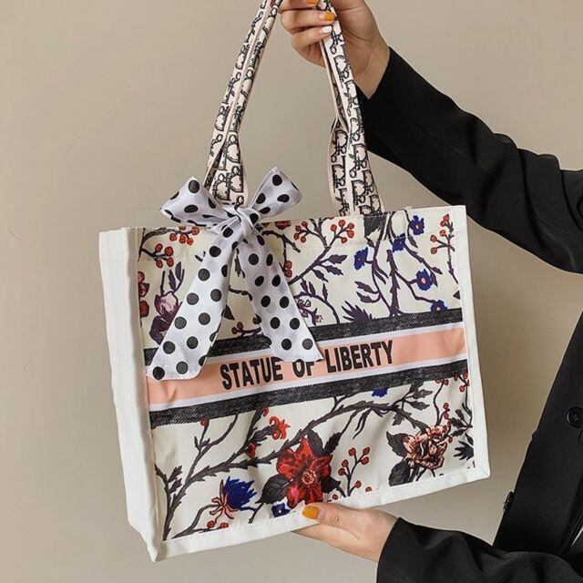 トートバッグ 英字 メッセンジャーバッグ エコバッグ 大容量 リボン