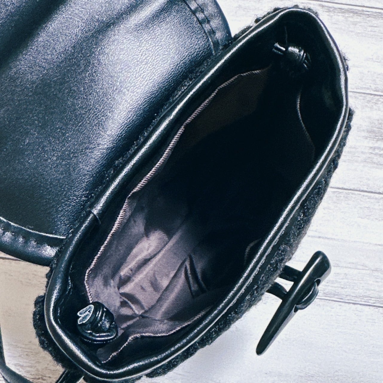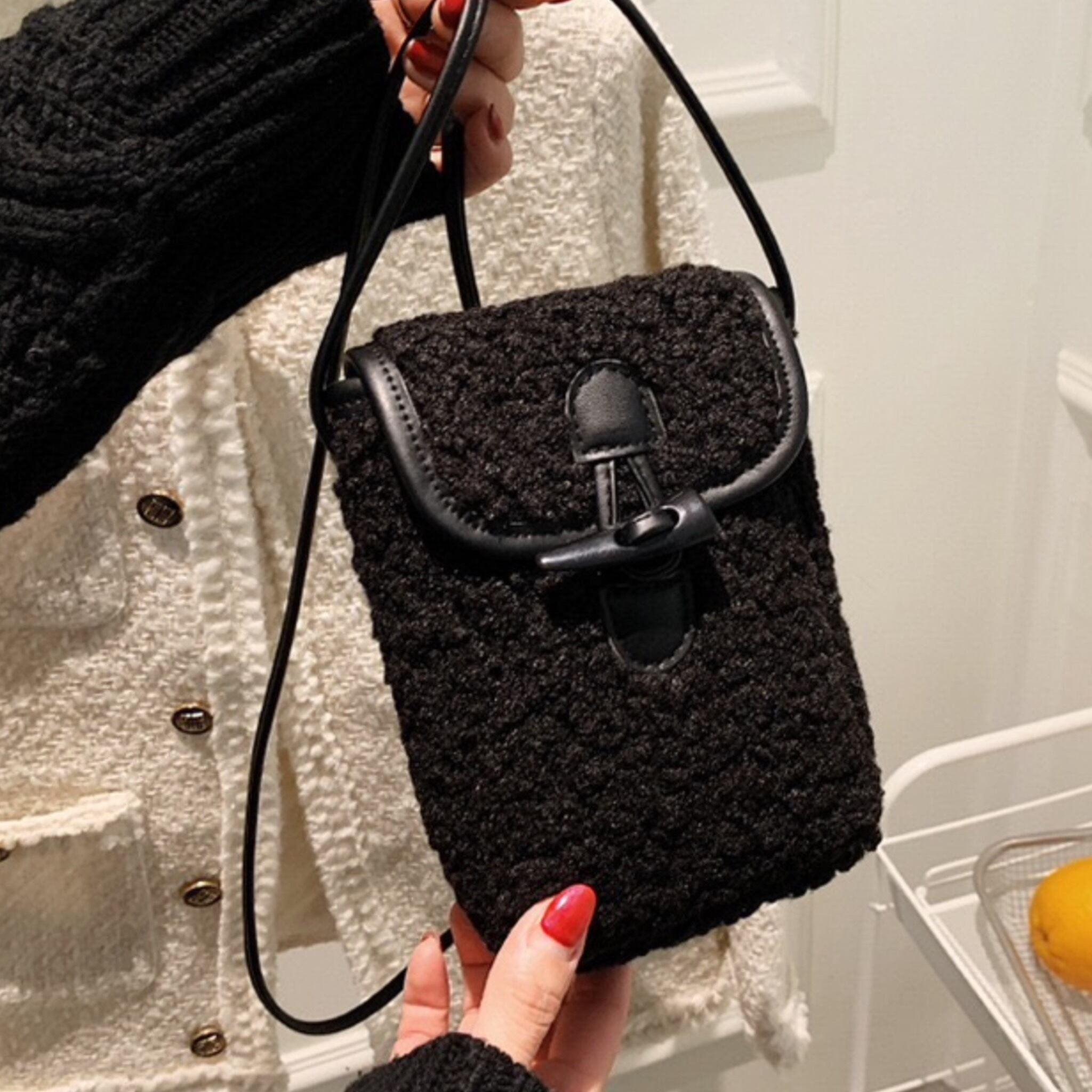 携帯 スマホ ブラック ボア ショルダーバッグ 斜めがけ もこもこ 秋 冬
