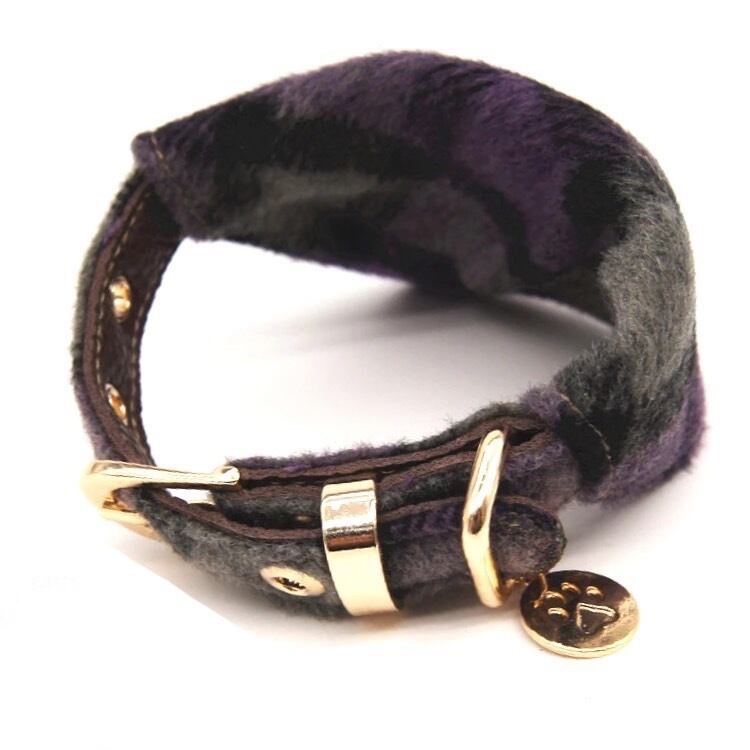 シックでおしゃれな紫チェック柄のリード&首輪のセットです。