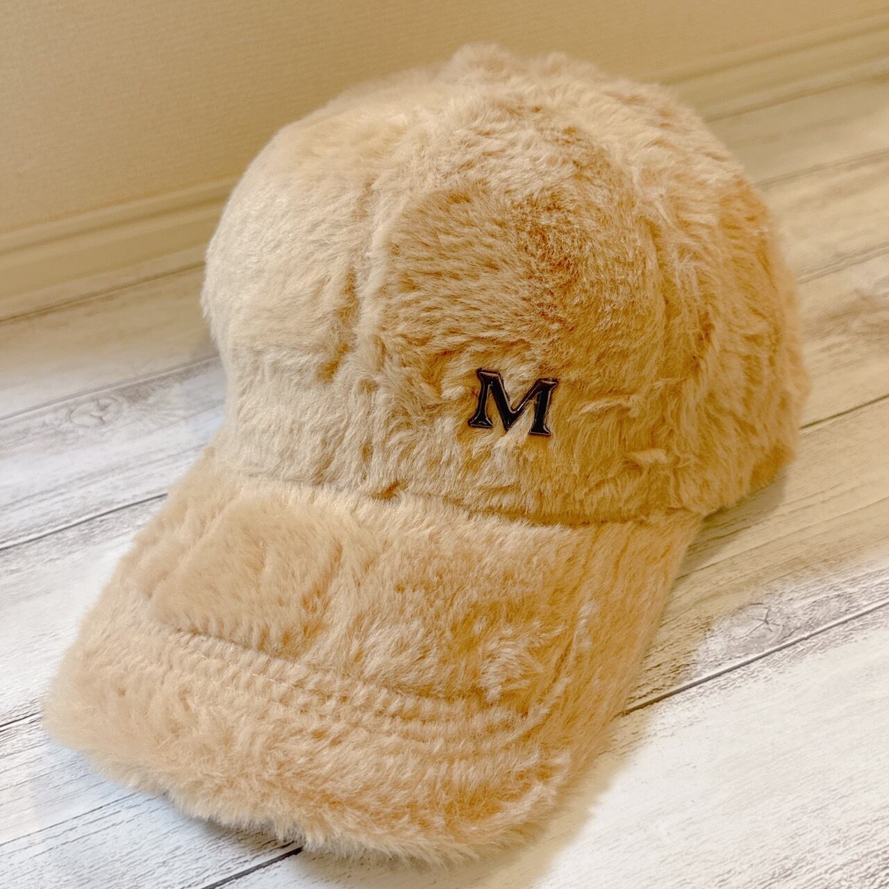 ファーキャップ ブラック ワンポイント イニシャル モコモコ ストリート 秋 冬 可愛い