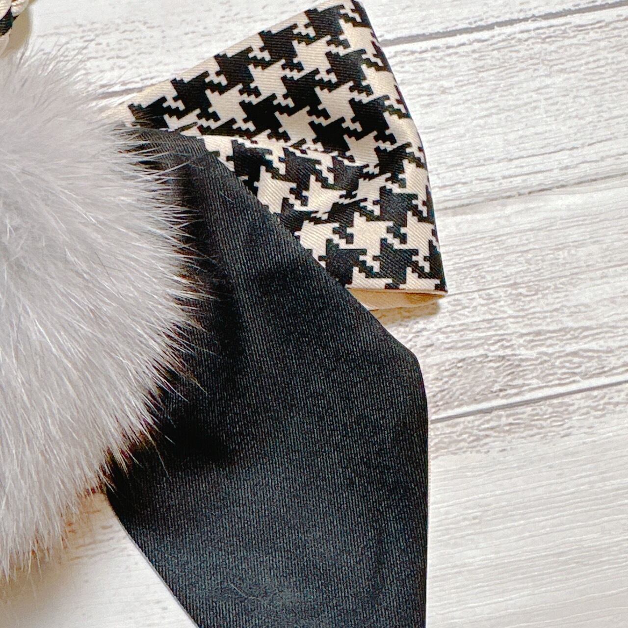 キーリング 千鳥柄 ブラック リボン バッグチャーム キーホルダー ふわふわ 可愛い