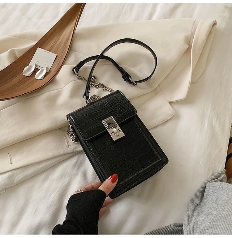 今年流行 携帯 スマホ ブラック ショルダーバッグ クロコ 型押し 斜めがけ ポーチ 丈夫 高品質