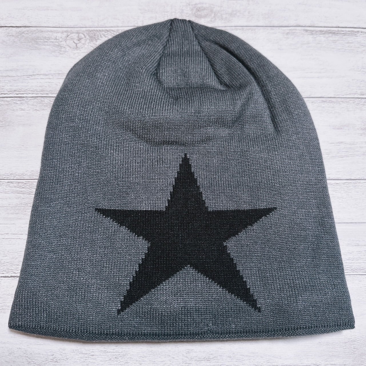 スター ニット帽 ワンポイント グレー メンズ レディース ビーニー 帽子