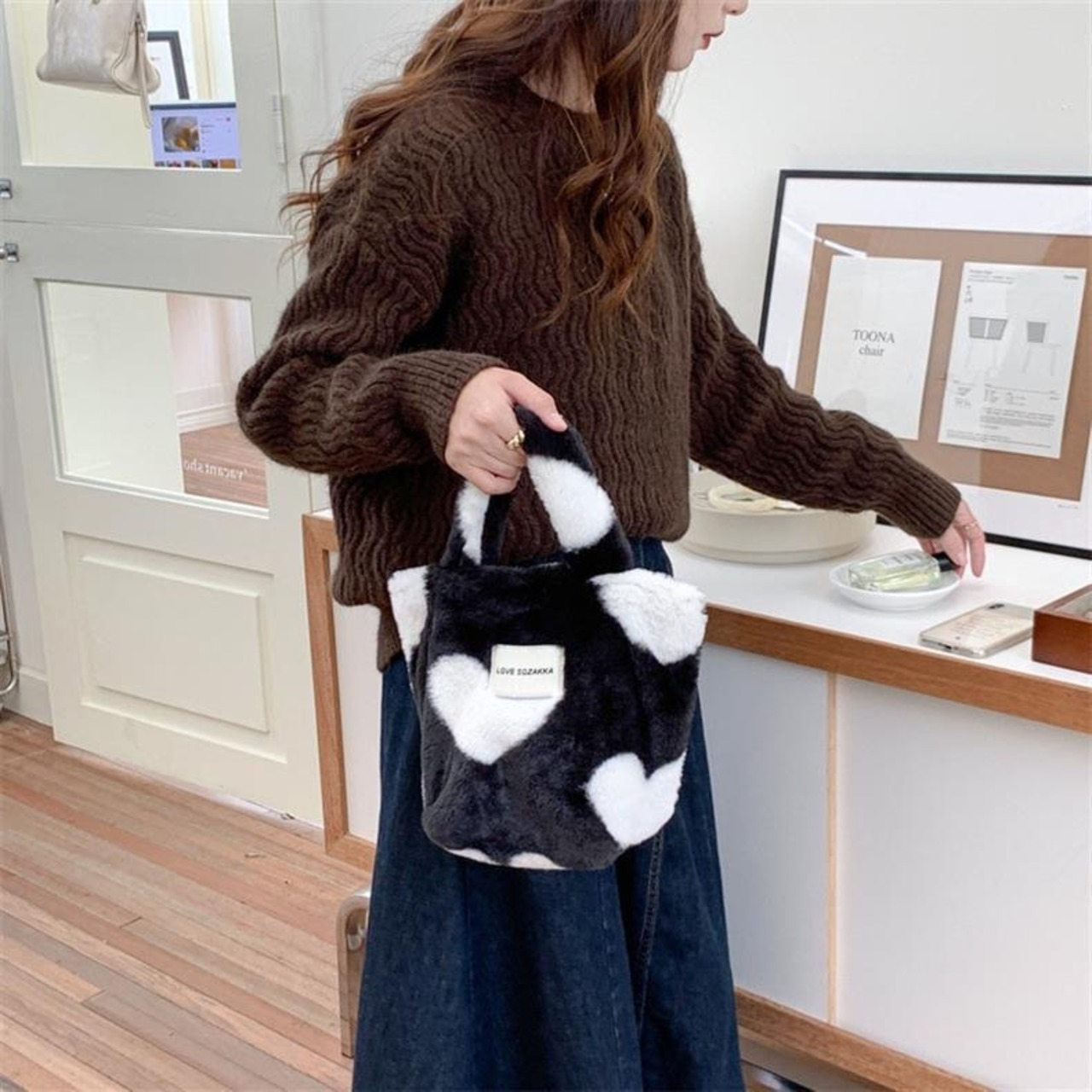 もこもこ ハート ベージュ ミニトートバッグ 韓国 ファー 大人可愛い
