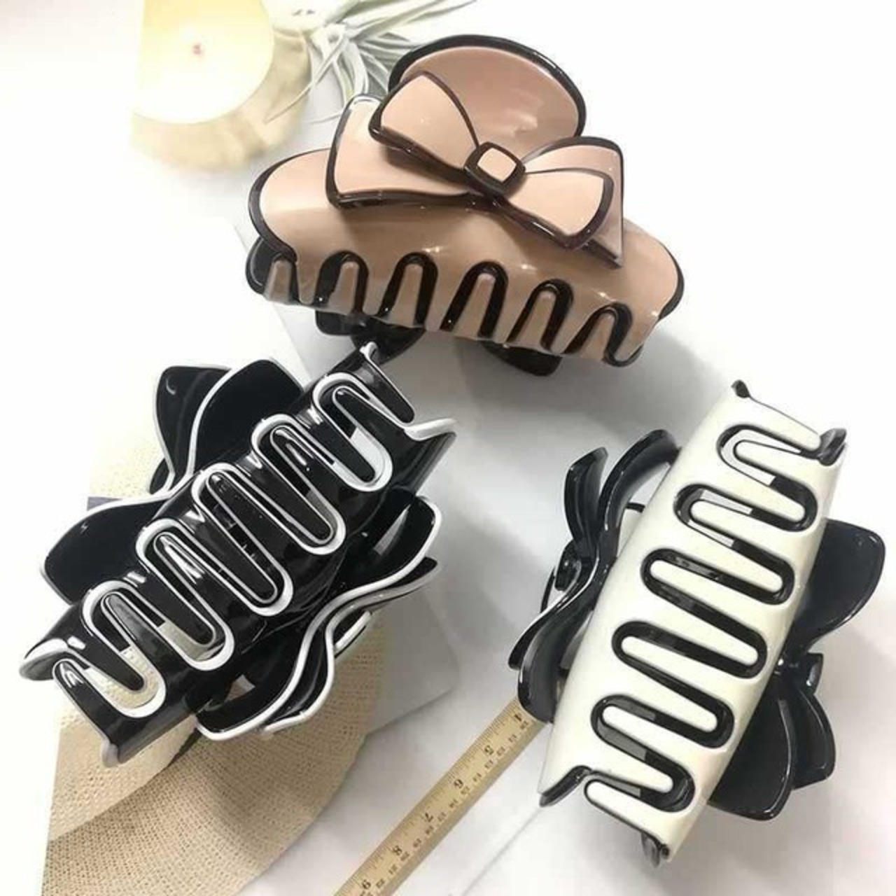 リボン ヘアクリップ バンスクリップ ブラック 大人可愛い