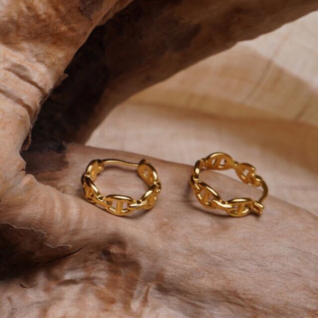 アンカーチェーン フープピアス ゴールド 両耳 男女兼用