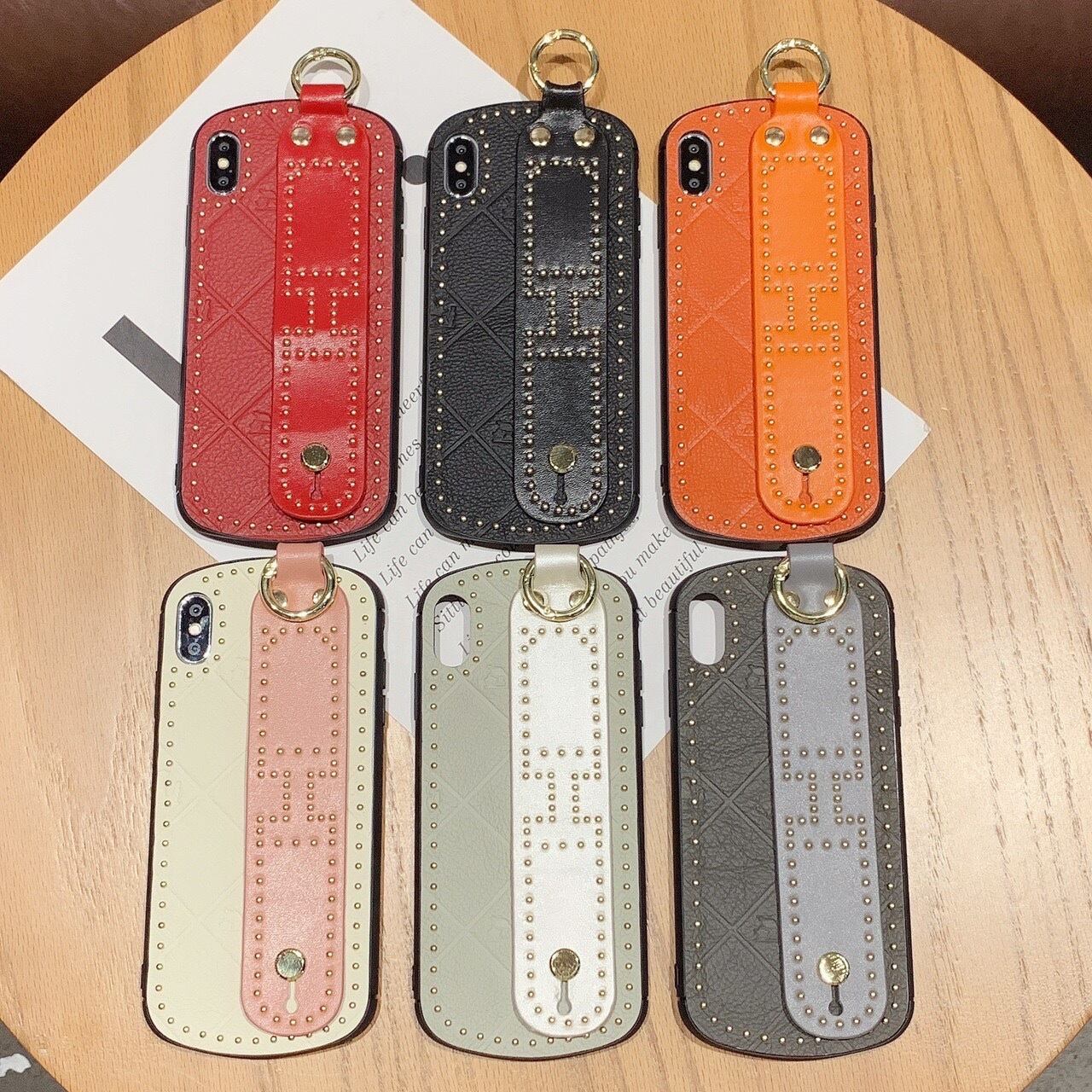 レザー スタッズ リング ベルト iPhone11ケース オレンジ