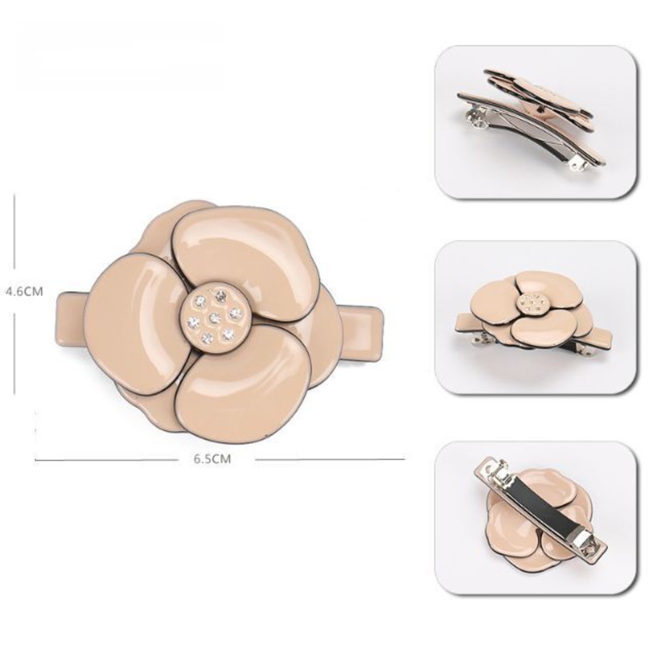 フラワー バレッタ お花 ヘアクリップ 2個セット ブラック&ピンク