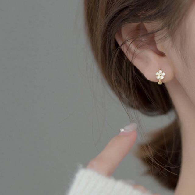 シンプル フラワー フープピアス シルバー 花 キラキラ 韓国
