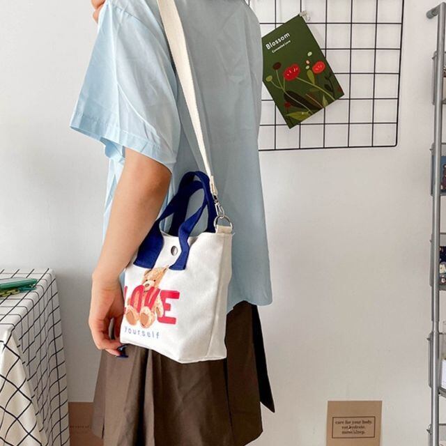 2way クマ キャンバス トートバッグ ハンドバッグ 韓国 可愛い レッド