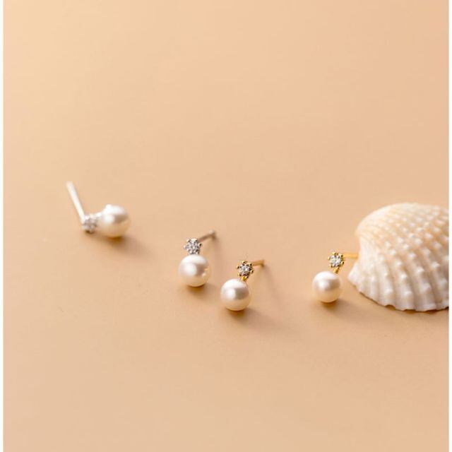 パール ジルコニア ピアス シンプル 可愛い シルバー 両耳