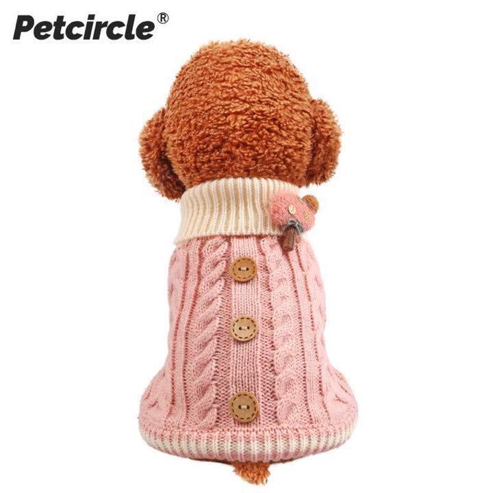 犬服 カラーニットセーター ブルー 男の子 女の子兼用 秋冬 Sサイズ
