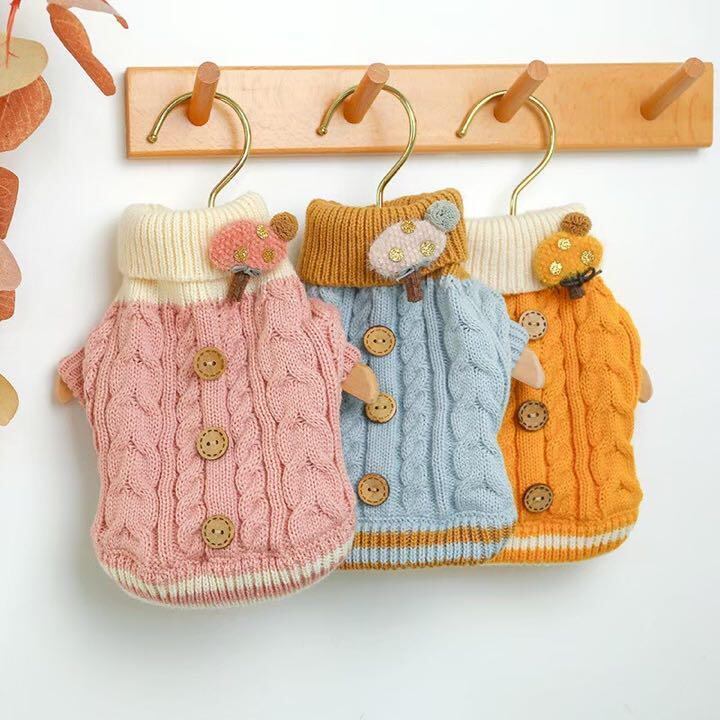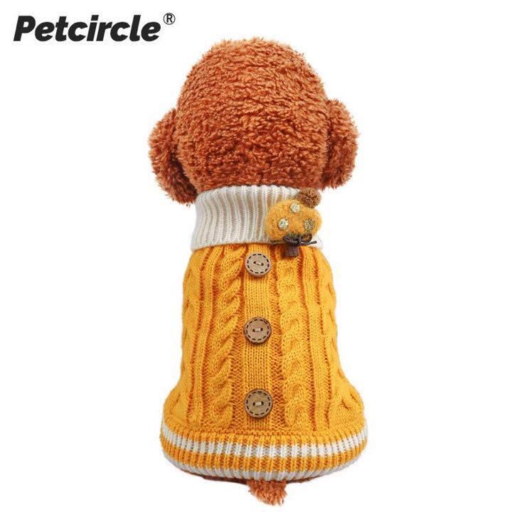 犬服 カラーニットセーター イエロー 男の子 女の子兼用 秋冬 Sサイズ