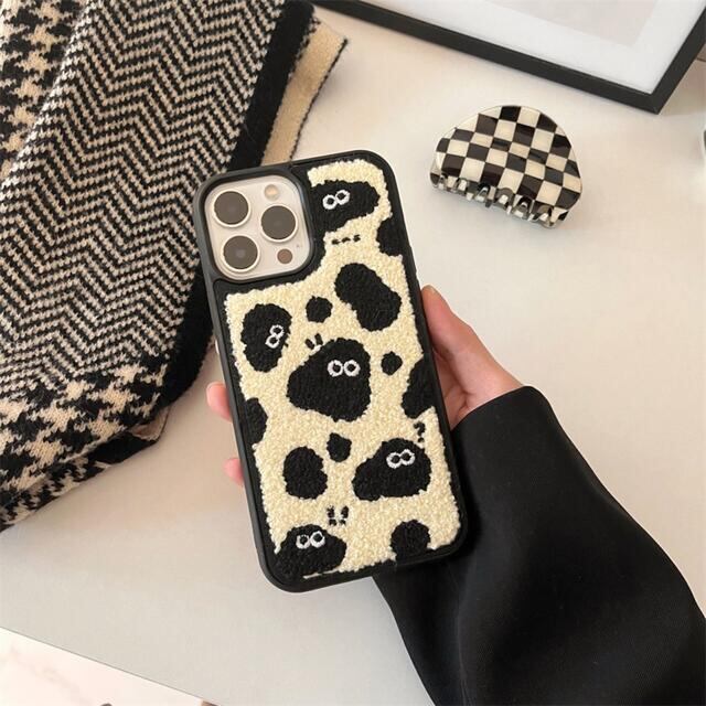 iPhone13promax もこもこ パイル地 モンスター 牛柄 可愛い おしゃれ