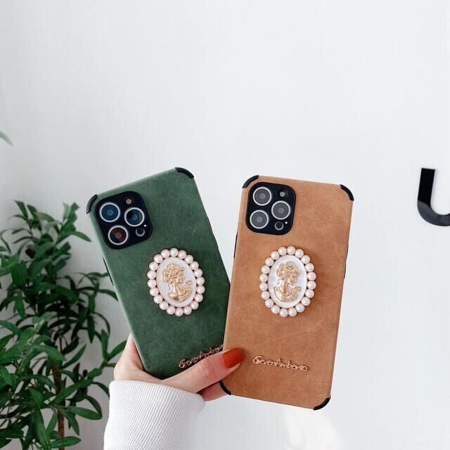 カメオ パール iPhone 12 ケース グリーン 韓国 ケース