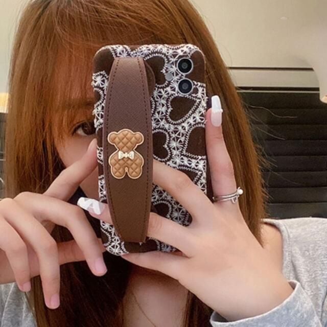iPhone11 対応 クマ ベルト リボン カバー スマホケース ブラウン