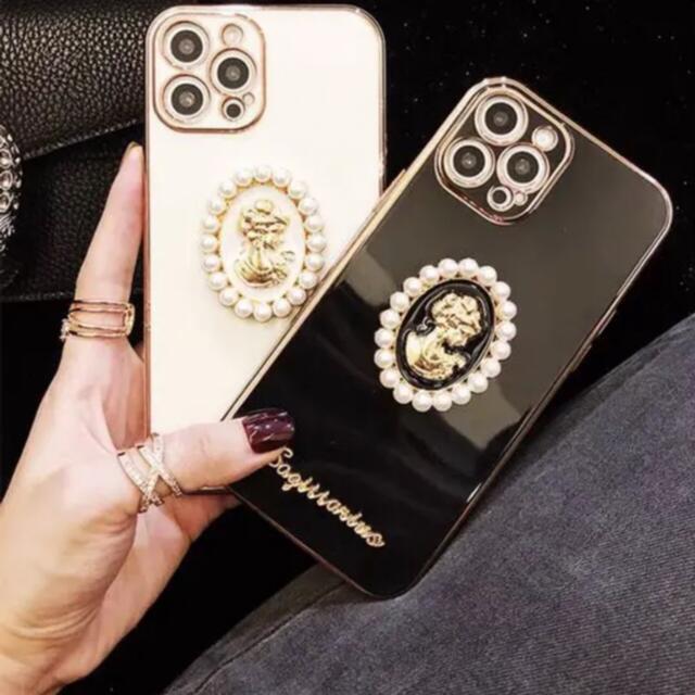 ・パールに縁取られたカメオが際立つかわいくておしゃれなiPhoneケースです♪