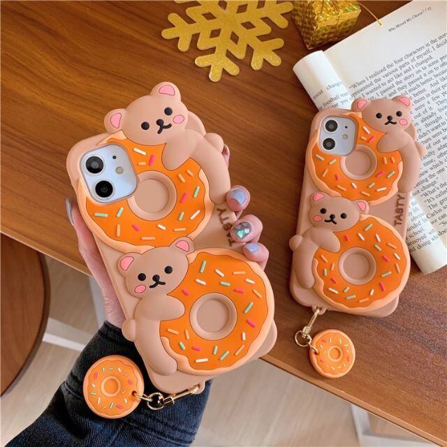 iPhone13promax 対応 クマ ドーナツ キーホルダー 可愛い ポップ 韓国