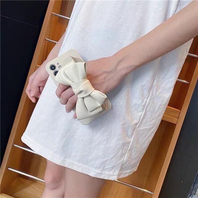 iphone13promax ケース ホワイト 韓国 リボン レザー ベルト