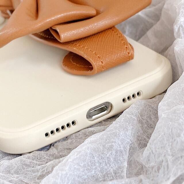 iphone12pro ケース キャメル 韓国 リボン レザー ベルト