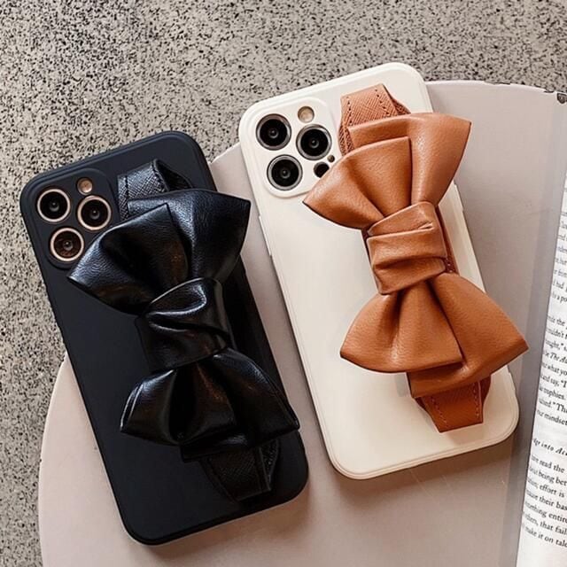 iphone12promax ケース キャメル 韓国 リボン レザー ベルト