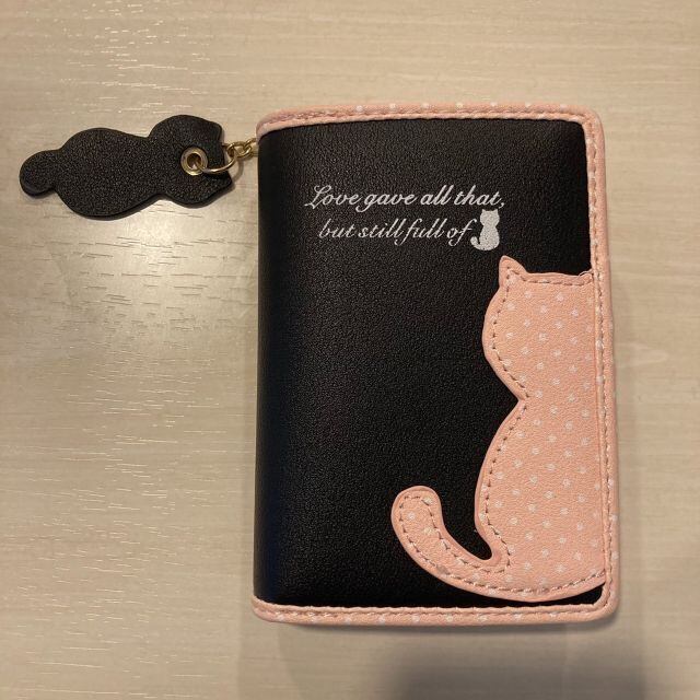シンプル 二つ折り 猫 ネコ ブラック 財布 可愛い カード 小銭入れ 韓国
