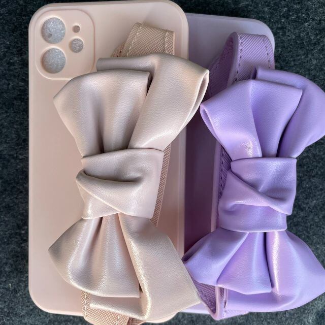 iphone13 ケース パープル 韓国 リボン レザー ベルト