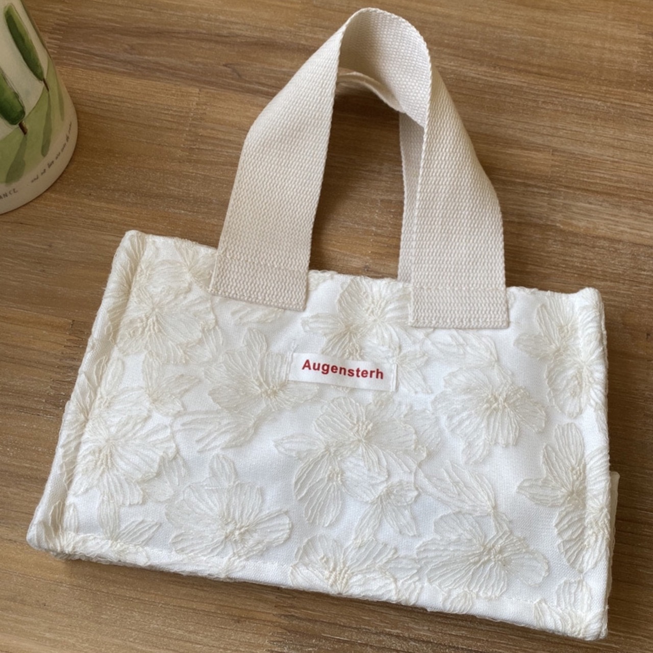 ハンドバッグ トート ホワイト 花柄 刺繍 大人可愛い ランチバッグ 韓国
