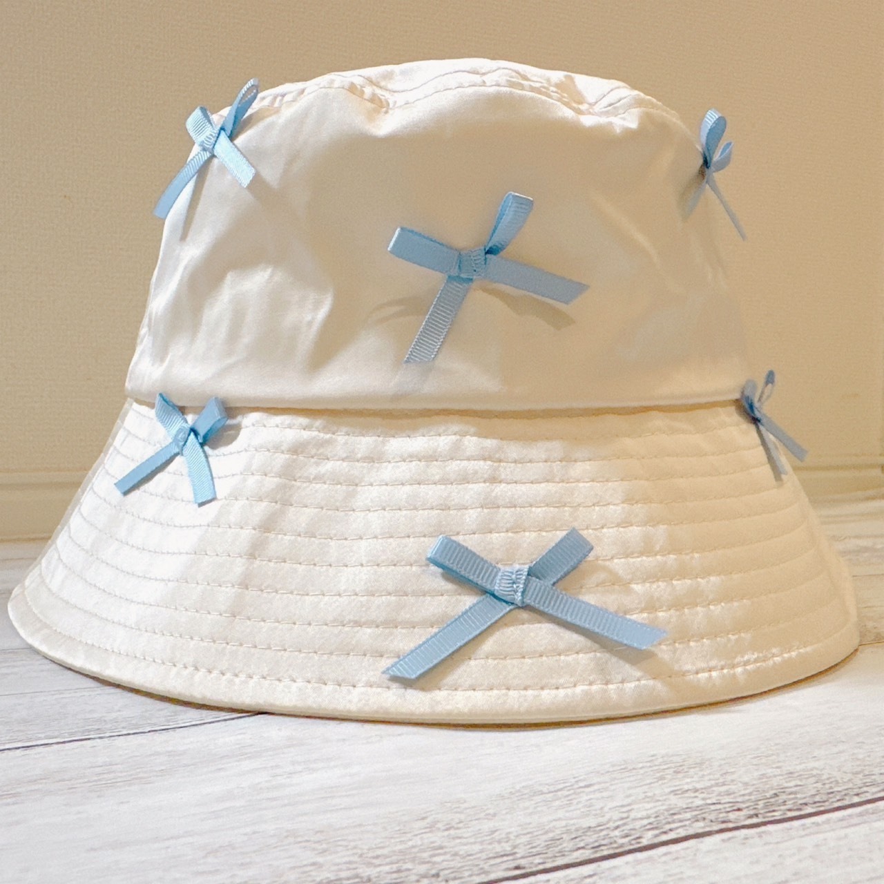 リボン バケットハット 帽子 ホワイト ピンク 韓国 大人可愛い