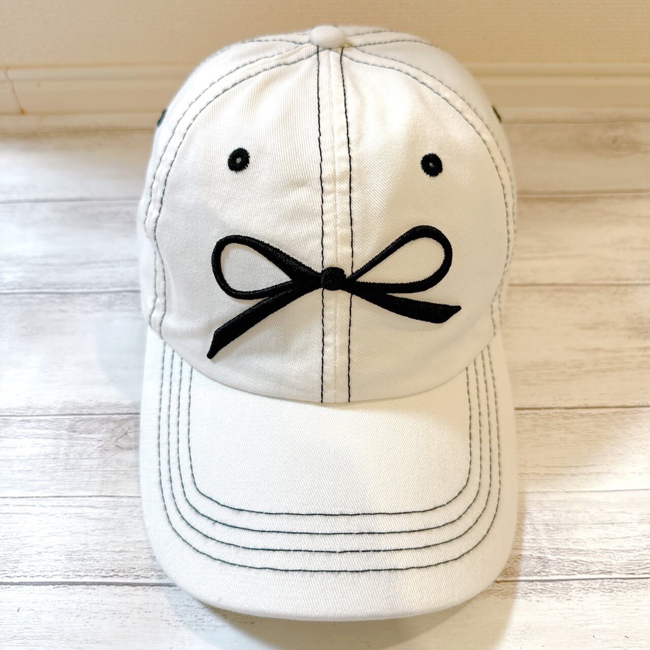 リボン キャップ ワンポイント ホワイト 韓国 大人可愛い 今年流行