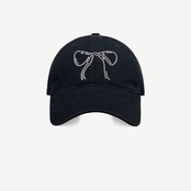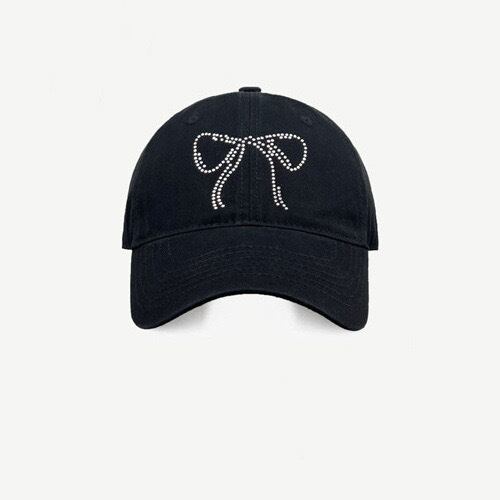 今年流行 リボン キャップ 帽子 ブラック 大人可愛い 韓国 キラキラ