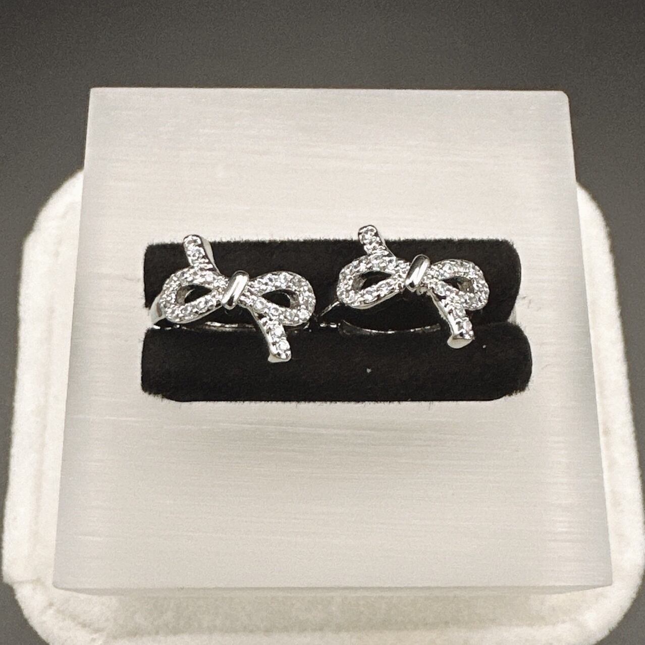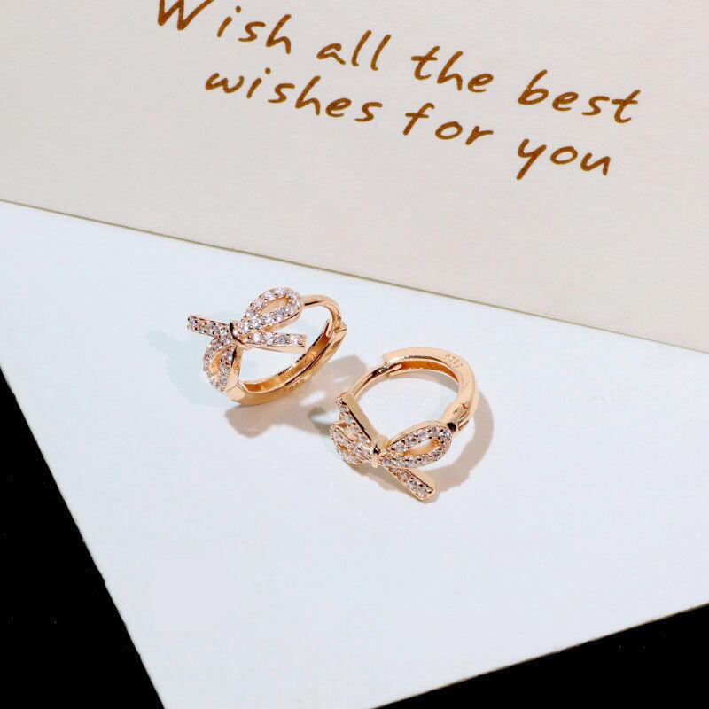 リボンフープピアス ワンタッチ式 ジルコニア キラキラ ゴールド 両耳