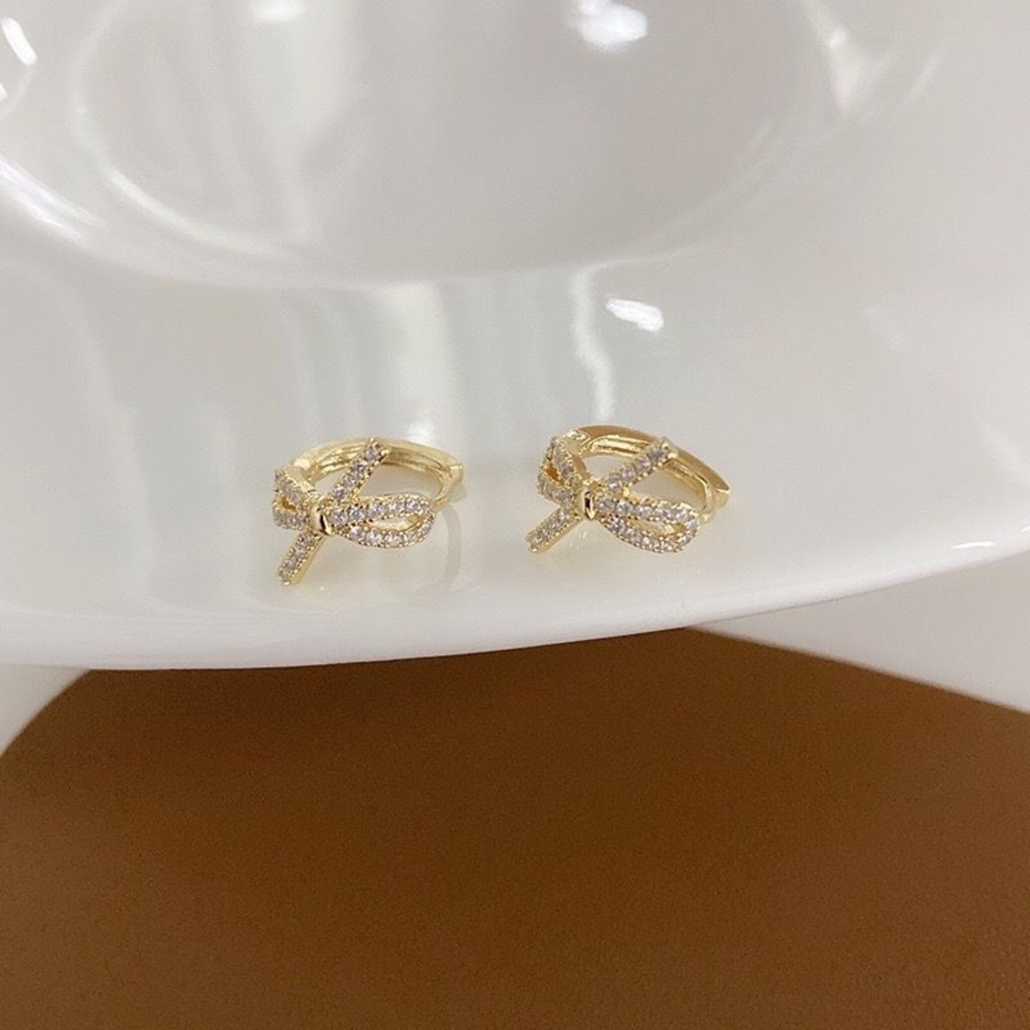 リボンフープピアス ワンタッチ式 ジルコニア キラキラ シルバー 両耳