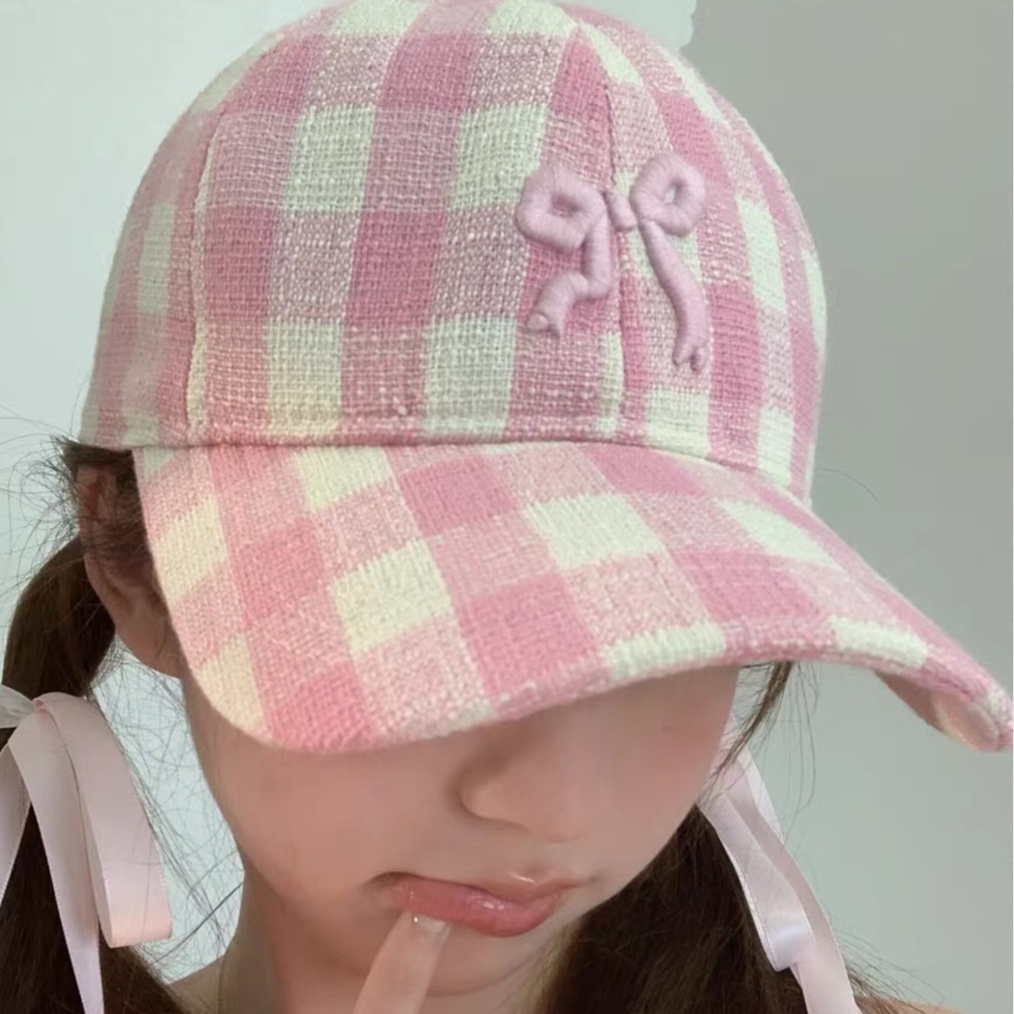 リボン キャップ ブルー 韓国 大人可愛い パステルカラー