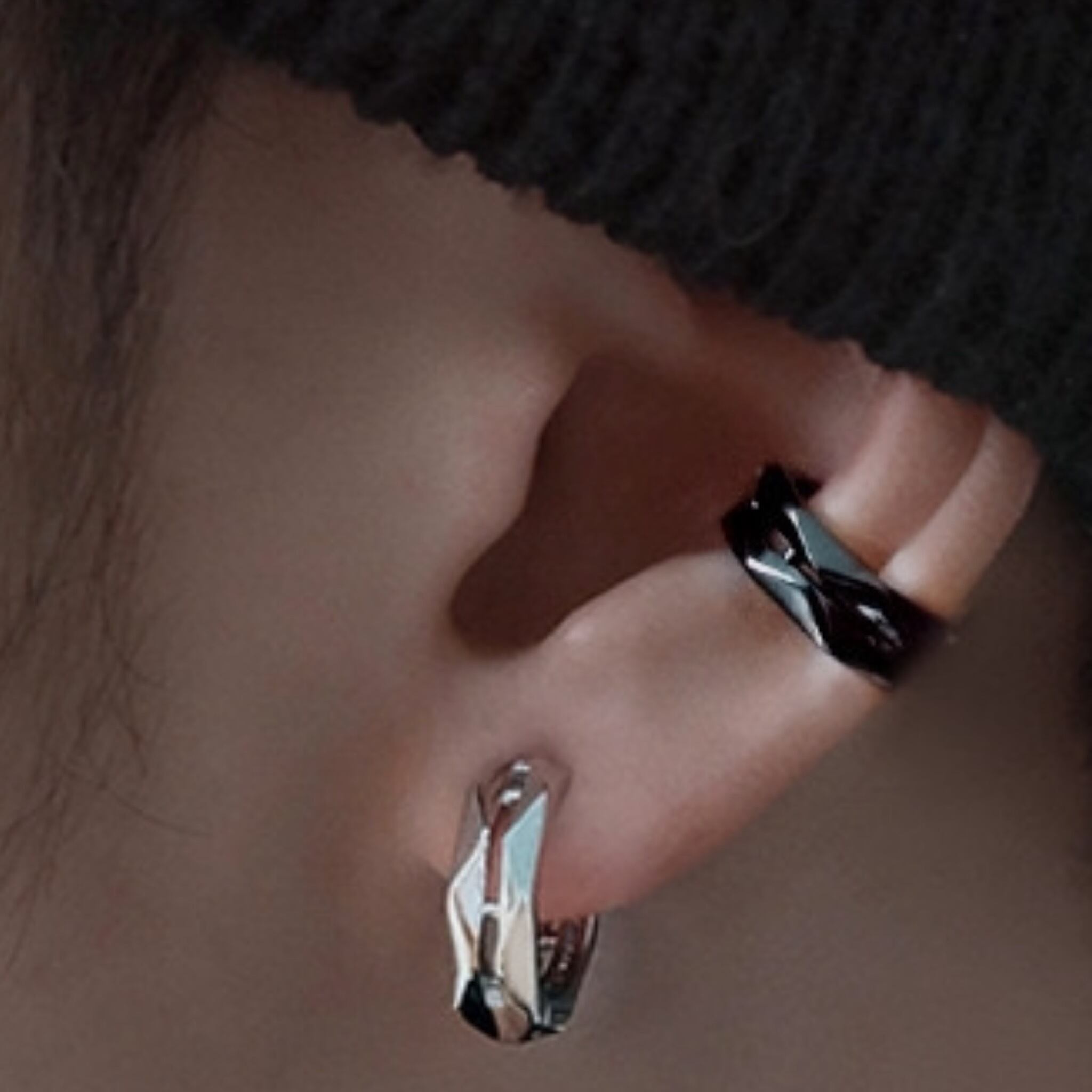 ブラック イヤリング イヤーカフ 高級デザイン メンズ レディース 片耳