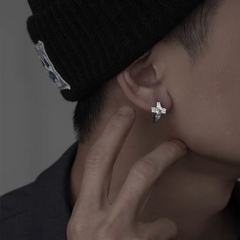 シルバー クロス 十字架 キラキラ フープピアス メンズ レディース 両耳