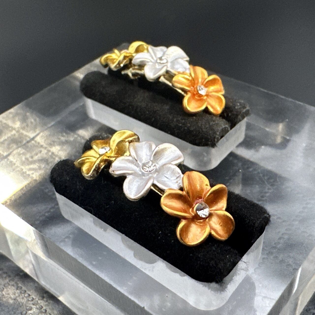 3連 花柄 ピアス プルメリア ハイビスカス ハワイアンジュエリー