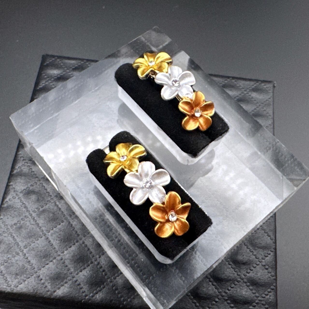 こちらはおしゃれな 3連 花柄 シンプル ピアスです!