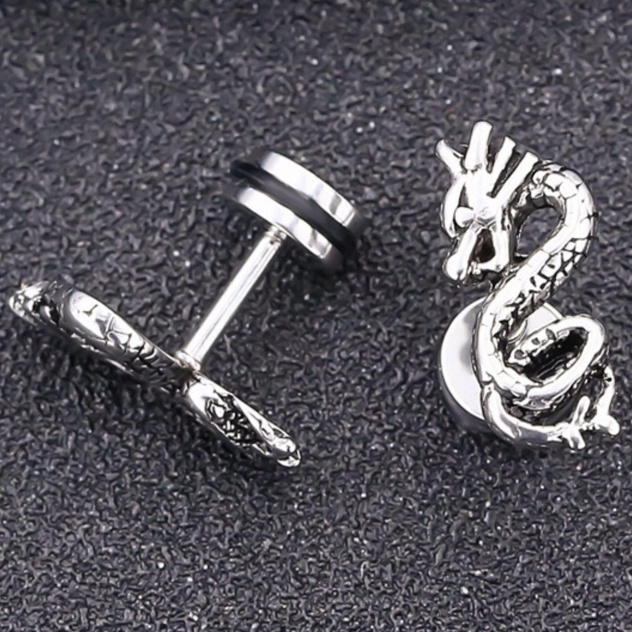 立体的なデザインでお洒落なネジ式ドラゴンピアスで、人気のデザインの1つです♪