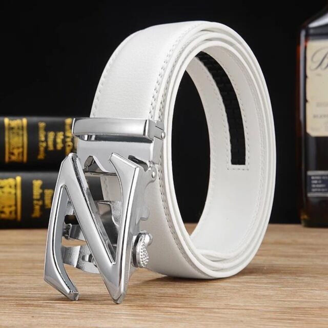 Z型ベルト ホワイト カジュアル オートロック オシャレ イニシャル 105cm