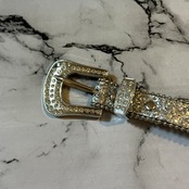 ウエスタンスタイルのバックルで印象的なベルトです。